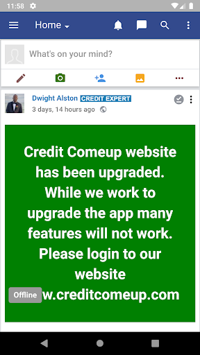 Credit Comeup is a social community that allow members to get their credit questions answered and we provide a solution to credit problems that hender the general public from moving forward in life. We pride ourself on sharing ideas, resources, knowledge, contacts, and building lasting relationships professionally. Credit is key to having a happier life so join the Credit Comeup movement.