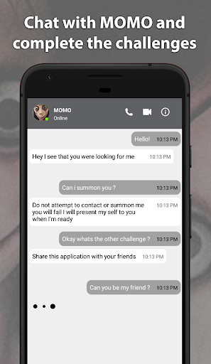 This joke application allows you to make a simulated chat and also allows you to send and receive messages from scary Momo.