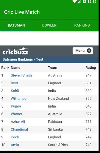 This app is essential for know cricket schedule live match.In this app also use Cricket Rank List from crickbuzz link.