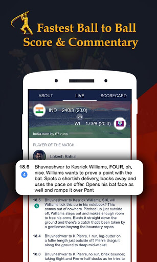 - Ball by ball commentary that helps you visualize the action of Cricket Live Updates
