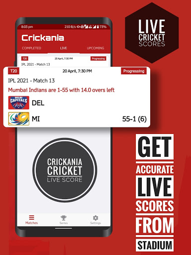 Crickania App gives you ball by ball fastest cricket score updates of live cricket matches for IPL, ICC, ODI, test matches, T20 etc which are faster than any other media or app.