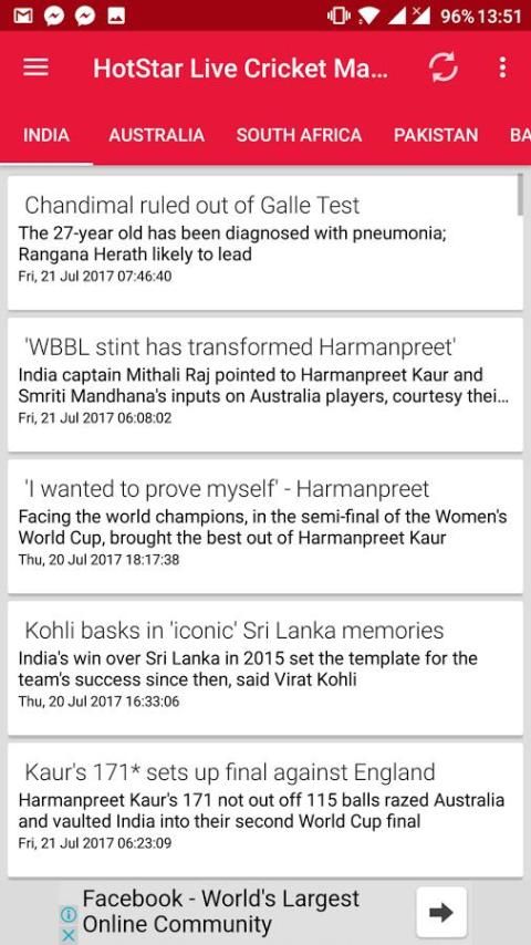 You can get the updates of all the matches in around the globe with just a single application. You can get following features with the Cricket Buzz Live Cricket matches