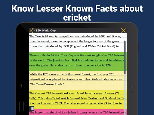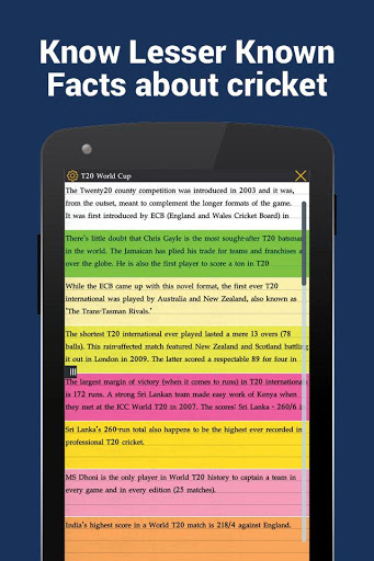 “Cricket Fact” is a free application, which provides fun/general information about various world cup/T20/IPL/Test match cricket, players anything related to Cricket world.