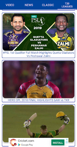 Here You can find recent cricket videos, highlights, clasic matches, t20 league highlights around from world and reccent cricket news etc.