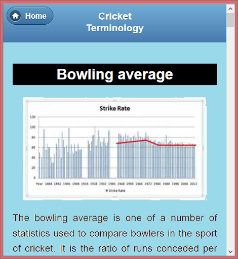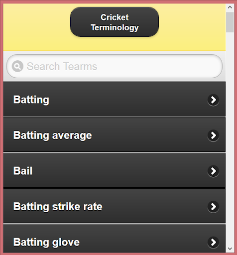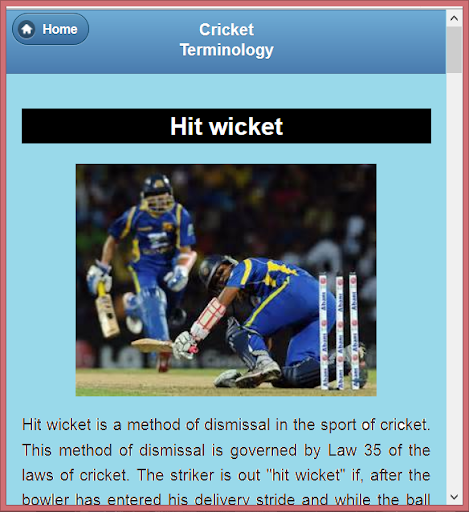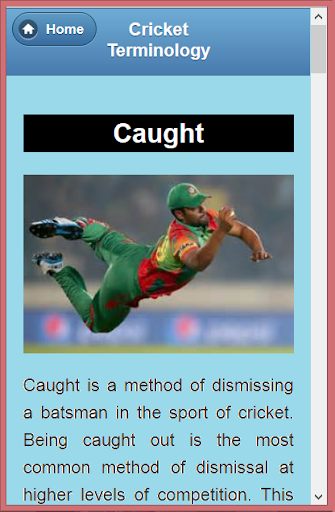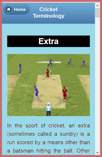 In this app we try to describe all the terms and terminology of cricket. We try to illustrate these terms with example and pictures. We hope it will help the users to know about the cricket.