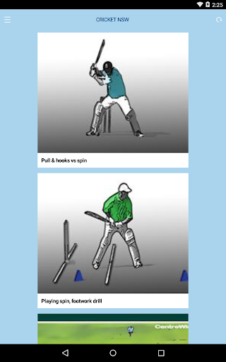 The Cricket NSW Coaching app allows subscribers to view their training schedule, and to view the training content. Videos and slideshows are displayed within the app for easy access when conducting training sessions.