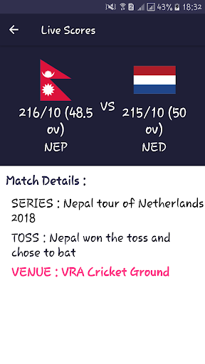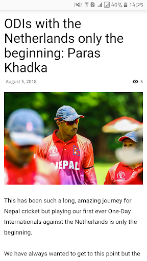 This App will let you read recent news and views of Nepalese and World Cricket from reliable sources. For example, ESPNCricinfo, Republica, Himalayan Times, EKantipur, Cricket Nepal etc. This app also shows local, national, regional and international scores, news, updates, podcasts, live streaming etc.