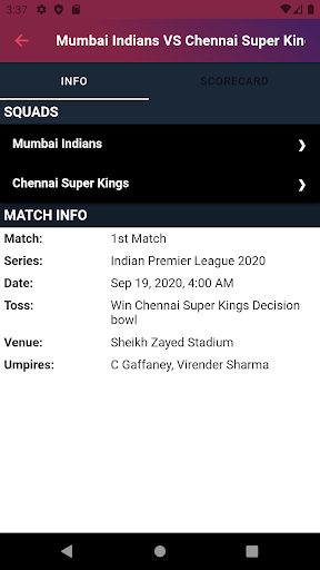 Full Scorecard on Live Line as well as Squads Information
