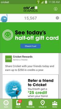 - Check In: Using your Cricket Rewards app you can earn even more by checking into local retailers, including Cricket and 1,000s of local Wi-Fi hotspot locations,