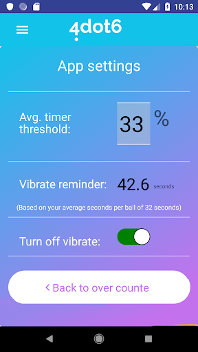 Use the advantage of having an app as your cricket umpire run counter. The 4dot6 cricket umpire run counter app will vibrate to remind when you have forgotten to score a ball. How? The app calculates the average time between balls - and when this time has gone over by 33% - we remind you with a slight vibrate. Now all you need to do is workout if the ball was pitching outside leg stump...