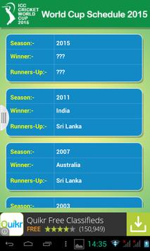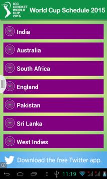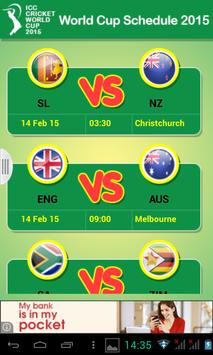 Amazing App for Cricket World Cup Schedule 2015. The app is for the Latest Cricket World Cup Schedule 2015 and much more with that. There Are 2 Groups: Group-A and Group-B, Each Group Consist On 7 Teams And They Will Play 6 Matches Before Quarter-Final. New Zealand And Australia Are Hosting the Cricket World Cup 2015. The app has Beautiful And Attractive User Interface Design And Animations, Download This Free Application And Enjoy The Upcoming Features are on its way as the world cup is coming closer.
