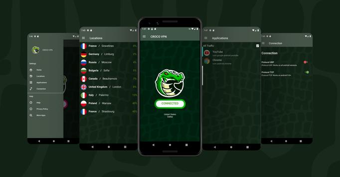 Croco Vpn is an unlimited proxy service for Android. Get access to blocked sites, services and applications.