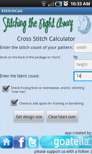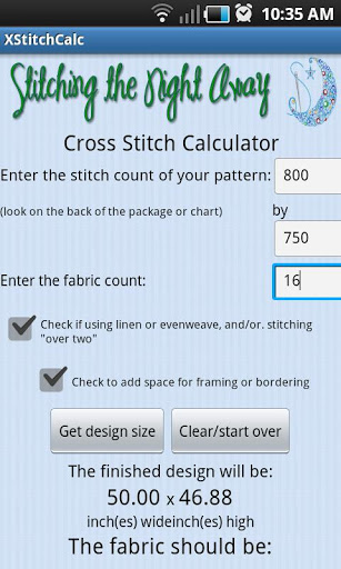 This application helps cross stitchers determine what size fabric they need before starting a project.