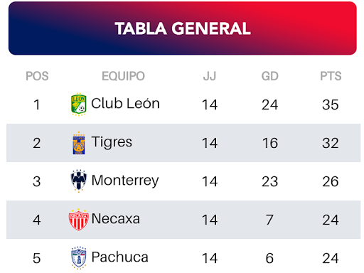 - Calendario y tabla general de Cruz Azul F.C.