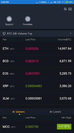 Bitcoin (BTC), Ethereum (ETH), Bitcoin Cash (BCH), Tether (USDT), NEO, Qtum, Litecoin (LTC), Cardano (ADA), Ripple, (XRP), Zcash (ZEC), Ethereum Classic (ETC), OmiseGO (OMG), Monero (XMR), Dash, Walton (WTC), Hshare (HSR), DigiByte (DGB), Binance Coin (BNB), SALT, Lisk (LSK), AdEx (ADX), IOTA (MIOTA), Stratis (STRAT), Kyber Network (KNC), EOS, AdEx (ADX), ChainLink (LINK), Waves, InfChain (INF), BitShares (BTS), Verge (XVG), Regalcoin (REC), Aeon, FirstBlood (1ST), Monaco (MCO), NEM (XEM), Dogecoin (DOGE), Bitcoin Gold (BTG), Stellar (XLM), TRON (TRX), Populous (PPT).