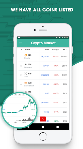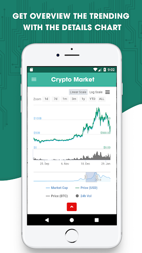 details and visualization of charts (with different time periods) of the cryptocurrency. Also you can zoom in the chart and get the price in a certain date by touching it.