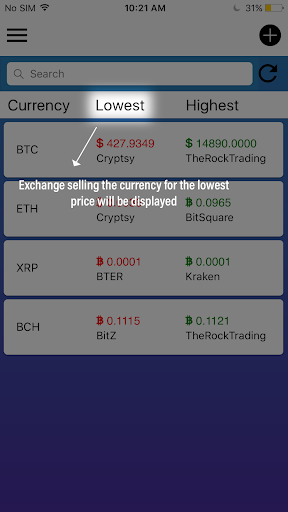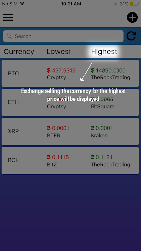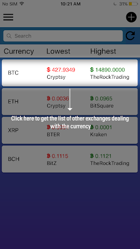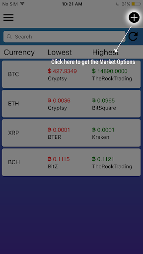 Crypto Market Compare is a price comparison app which lists the prices of the top crypto currencies available through different crypto currency brokers. This app does not allow you to buy or sell any crypto-currencies, the user will have to go to respective broker website/portal to buy or sell their desired cryptocurrencies. We have currently listed top 20 crypto currencies like Bitcoin, Ripple, Etherium, Litecoin and more.