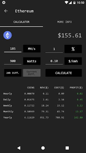 This application requires good internet connection for loading cryptocoin data required for calculations.