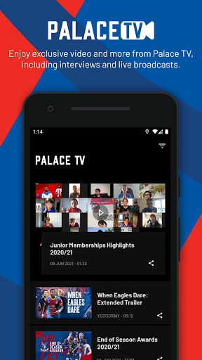 Download now for your daily dose of Palace news and features, live match broadcasts and audio commentary (requires Membership or digital subscription), Palace TV video library including highlights of every Palace match, live scores and match centre for Palace games and all Premier League and Football League games, fixtures and results, league tables and more.