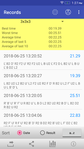 The application records the time for completion of magic cubes 3x3x3, 4x4x4 etc.