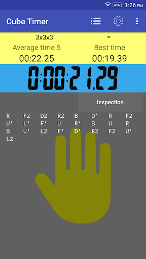 Tap the hand icon to reset the timer. The timer will start when you hand leave the icon. Tap the hand icon again to stop the timer.