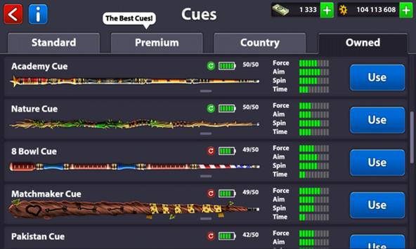 Description of Cue For 8 Ball Pool