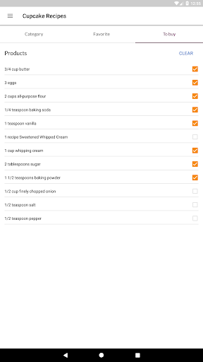 - enjoy section To buy - just add the products from the recipe here and use the shopping list when you go to the store. The application works offline, so the list of products for will