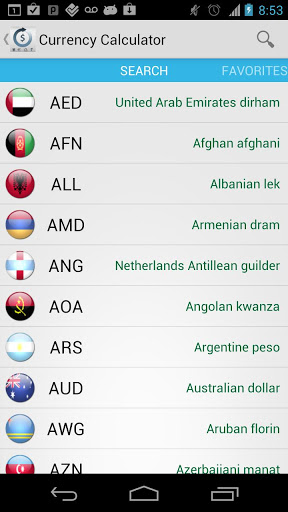 - Search the currency for the actual location