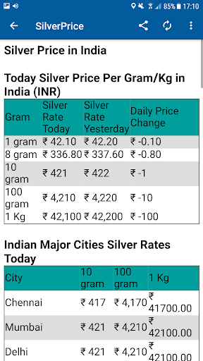 22 and 24-carat gold and silver price show and USD dollar to Indian rupees one month maximum, minimum and close price showing this application and also used current live gold and silver price showing