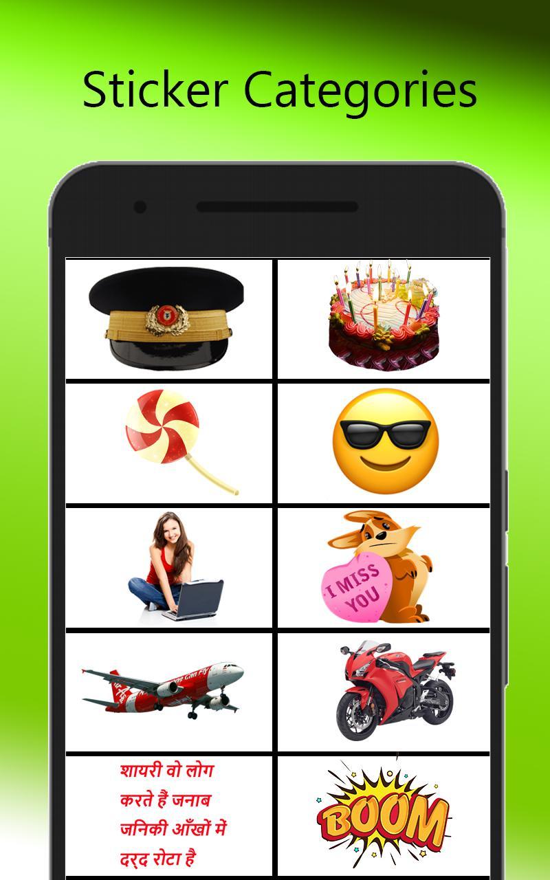 Hundreds of stick images are available in this Background changer. The categories are Miss you, Horse, Balloon, Cakes, candy, emoji, smiley, flower crown, mouth, Comic, Dog & cat, love, beard, men hairstyle, mustache, tattoo, photo booth, sunglass, women hair style, women tattoo, women hat, police hat and Hindi Shayari stickers.