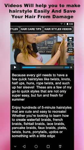 "Cute Girls Hairstyles", is a girls hairstyle step by step application in which you can find the best girls hairstyles step by step and girls hairstyle videos. Lots of models of hairstyles are very beautiful. All of the hairstyles are elaborate hairstyles. You can also choose what hairstyle fit your face. Therefore we present a very interesting girls hairstyle step by step application to see hairstyle tutorial to know how to wear a simple hairstyle.