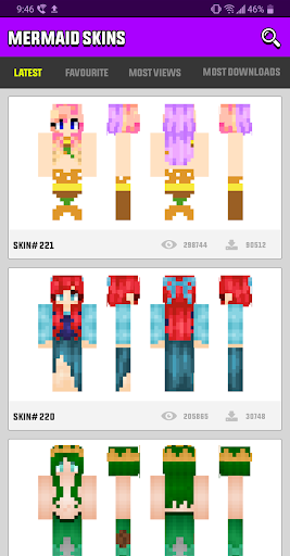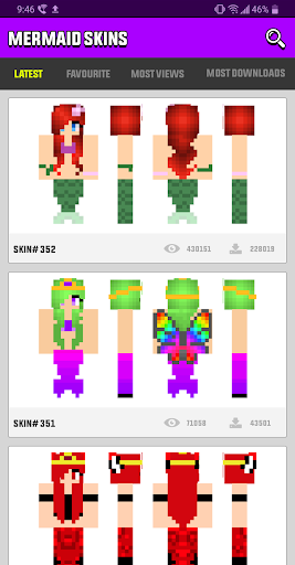 New Mermaid Skins collections for MCPE (Minecraft Pocket Edition) you will find the best create skins for Minecraft ever! Find awesome Mermaid skins and download your favourite skins or install them in Minecraft MCPE PE games with a single click.