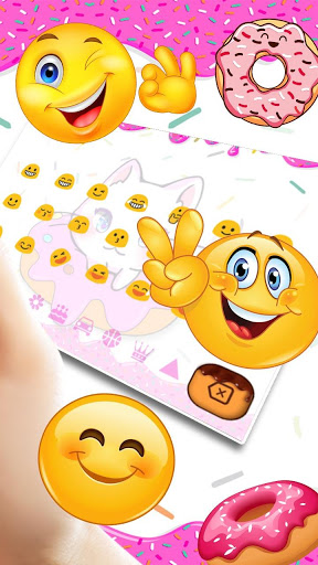 Cute Pink Donuts Cat Keyboard Theme will take a variety of functions for you. An awesome way to turn a plain Keyboard Theme into a beautiful, juicy and unique one.