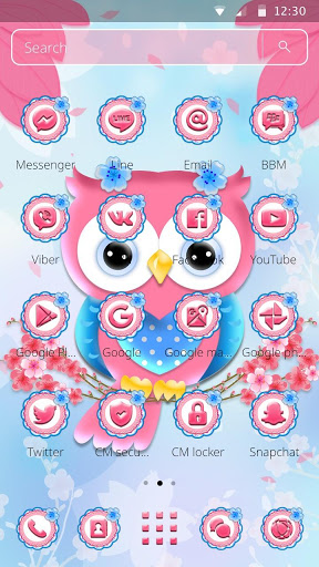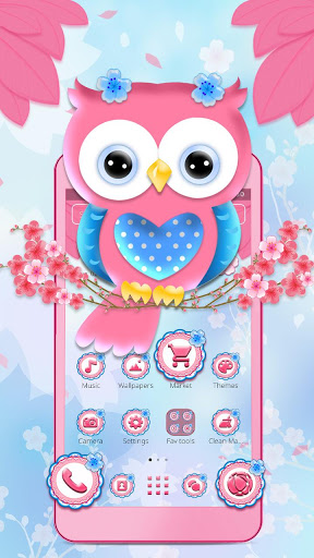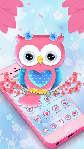 pinkish animated owl 3D Theme can be accessed on all social media apps.
