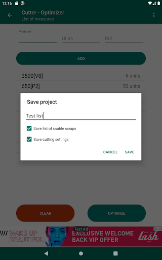 Use your own scraps to include in the optimization, useful to take advantage of leftover pieces that you have available.