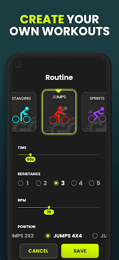 Try our bike and treadmill workouts. The virtual cycling trainer and the running coach will guide you in this sport app.