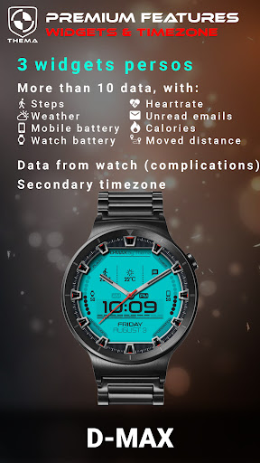 Choose between up to 8 indicators (Daily step count, Heartbeat frequency, Unread Email from Gmail, etc...)