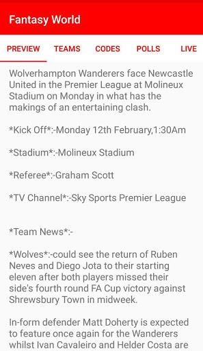 This is the App For Fantasy Football, Fantasy Cricket,Pro Kabaddi League and Fantasy NBA . We have Codes section also for all matches and also News section in which you can see