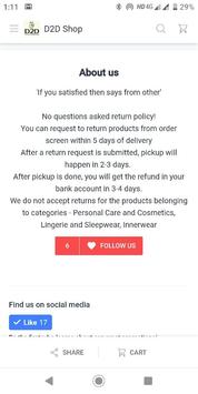 D2D Shop APP for Online shopping. Our return policy is "No questions asked return policy!