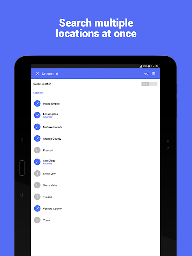 • Set your location manually or search multiple locations at once