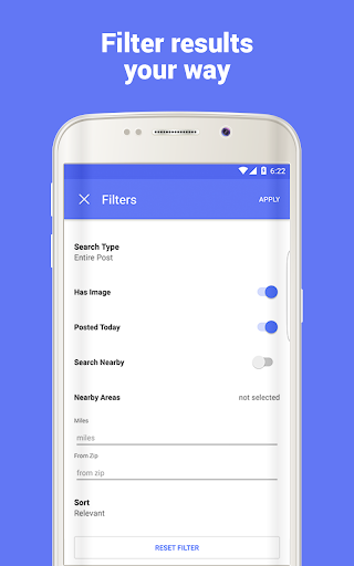 • Filter results by price range, listings with images, and most recent posts