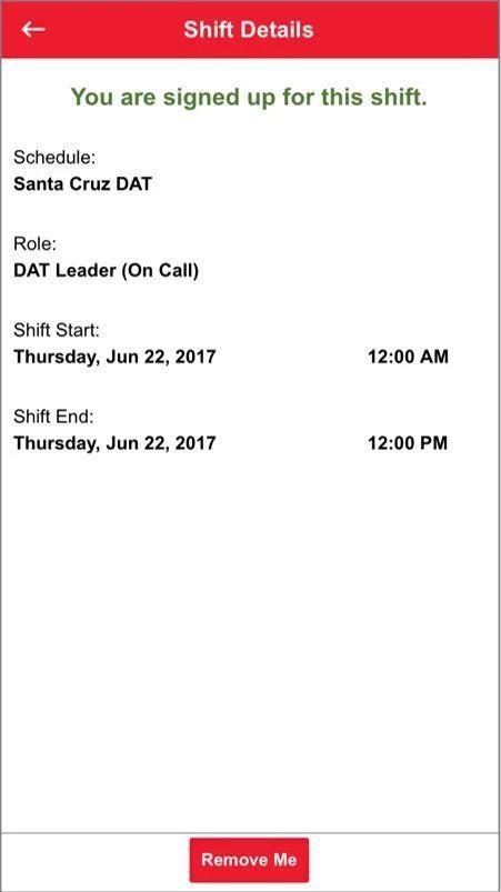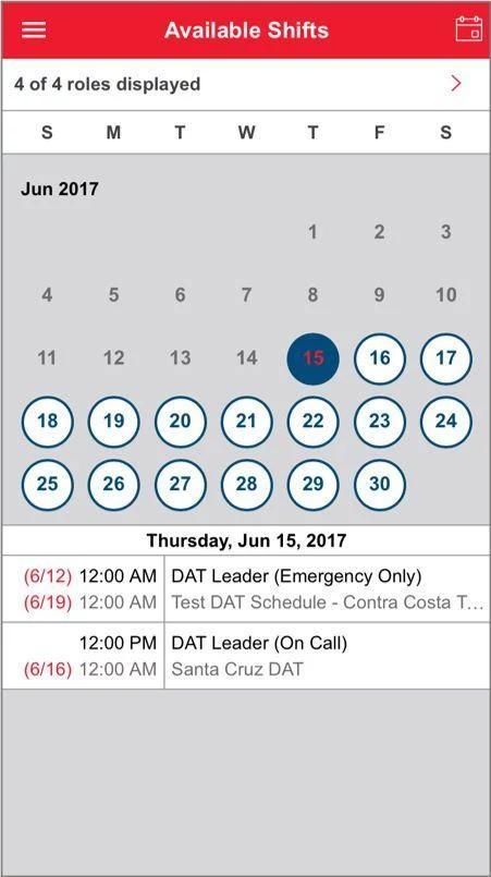 This app allows existing American Red Cross Disaster Action Team (DAT) responders the ability to view and respond to events, sign up for shifts, and view existing shifts.