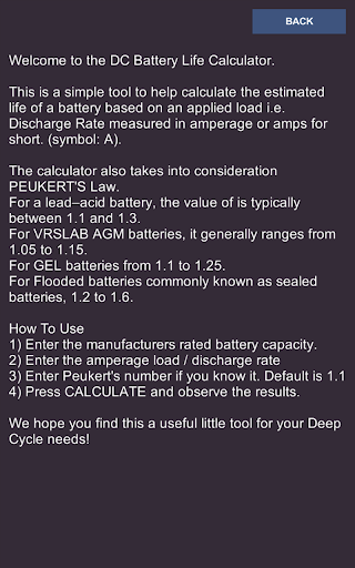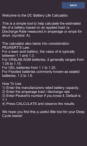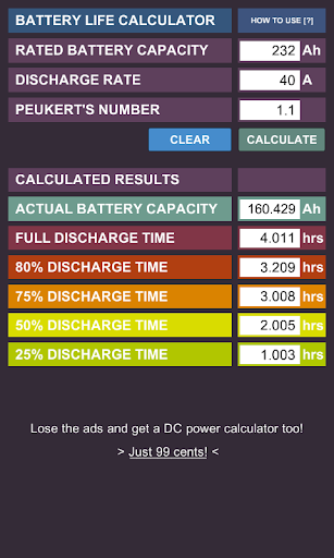 The calculator also takes into consideration PEUKERT'S Law.