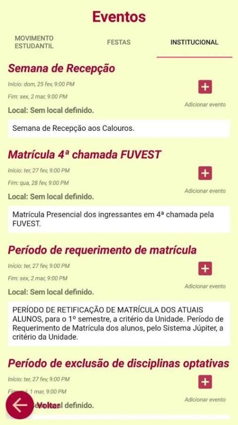 Application developed by management Our Voice, the DCE Free USP, in 2018, to help students find their way around campus, provide faster information about transportation issues, health, campus restaurants, and promote a space for discussion among students and between the board and the students.