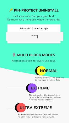 2 million porn sites blocked with a simple 1-tap setup! Select from different restriction modes: Normal, Extreme, Ultra Extreme.