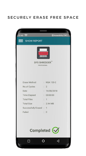 DFS File Shredder is a data shredding application which provides secure file deletion and secure free space erasing from your Android device. The file remover app allows you to secure delete everything in one tap or you can choose to delete folder and files.
