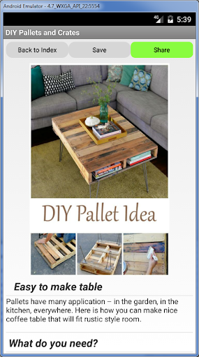 If you want to make pallets furniture for your garden, you will find lots of ideas in this app. Detailed instruction are available for each idea that you can easy follow and recreate diy pallets projects.