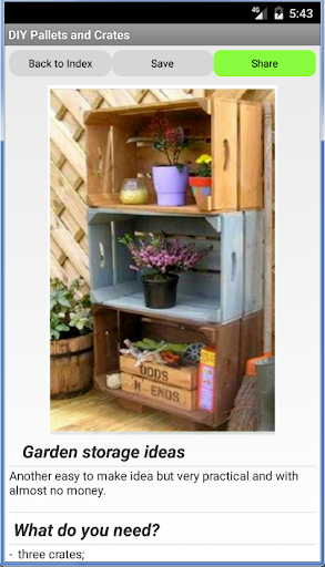 DIY Pallets and Crates is very nice app that offers lots of ideas how to turn old crates and pallets into wonderful garden furniture, storage ideas and many more unique and original things.