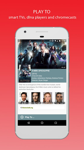 DLNA Movie Play allows the user to browse DLNA servers & google drive accounts and play/cast video/movie files on DLNA media players & Chromecasts provided they are all connected to the same network.