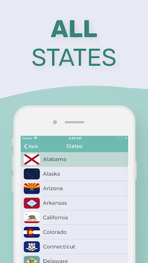 This app contains DMV Permit Practice Test for the following states: Alabama (AL), Alaska (AK), Arizona MVD (AZ), Arkansas (AR), California DMV (CA), Colorado (CO), Connecticut (CT), Delaware (DE), District of Columbia (DC), Florida (FL), Georgia DDS (GA), Hawaii (HI), Idaho (ID), Illinois (IL), Indiana BMV (IN), Iowa (IA), Kansas (KS), Kentucky KSP (KY), Louisiana OMV (LA), Maine (ME), Maryland MVA (MD), Massachusetts RMV (MA), Michigan DOS (MI), Minnesota DVS (MN), Mississippi DPS (MS), Missouri DOR (MO), Montana (MT), Nebraska (NE), Nevada (NV), New Hampshire (NH), New Jersey MVC (NJ), New Mexico (NM), New York (NY), North Carolina (NC), North Dakota (ND), Ohio (OH), Oklahoma (OK), Oregon (OR),Pennsylvania DOT (PA), Rhode Island (RI), South Carolina (SC), South Dakota (SD), Tennessee (TN), Texas (TX), Utah DLD (UT), Vermont (VT), Virginia (VA), Washington DOL (WA), West Virginia (WV), Wisconsin (WI), Wyoming (WY).